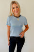 Model is 5'5, a size 2 and is wearing a size small in this striped tee.